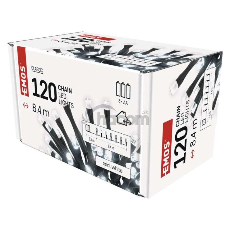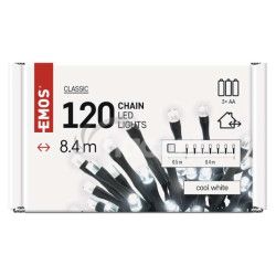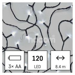 - LED vianočná reťaz, 8,4 m, 3x AA, vonkajšia aj vnútorná, studená biela, časovač D4FC03