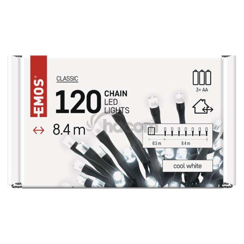 LED vianočná reťaz, 8,4 m, 3x AA, vonkajšia aj vnútorná, studená biela, časovač D4FC03