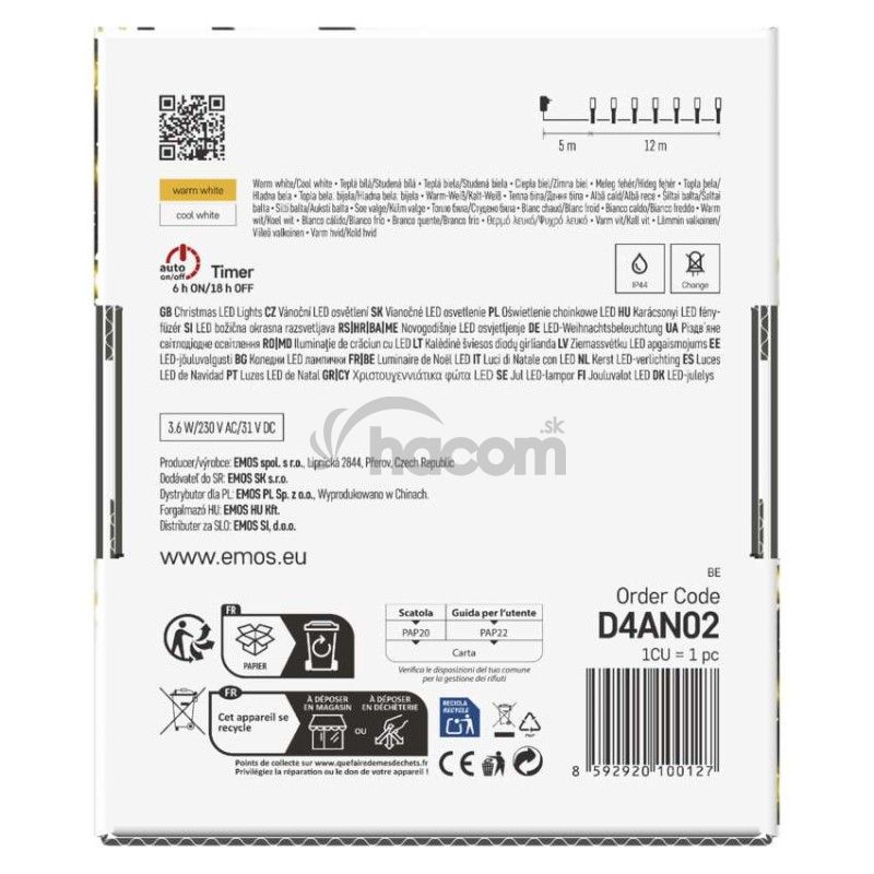 - LED vianočná reťaz blikajúca, 12 m, vonkajšia aj vnútorná, teplá/studená biela, časovač D4AN02