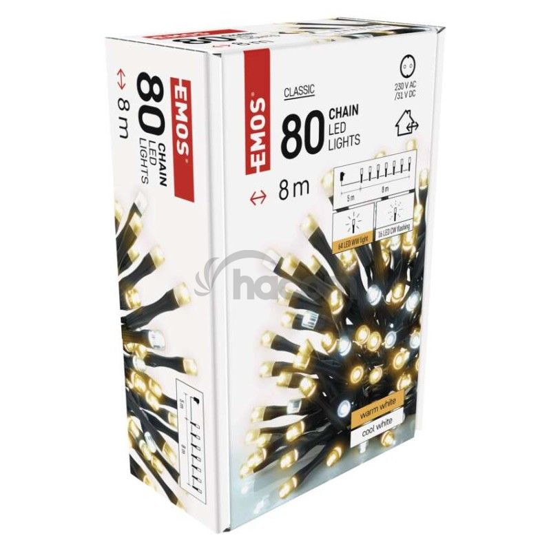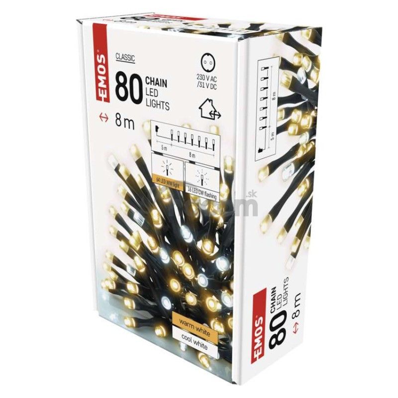 - LED vianočná reťaz blikajúca, 8 m, vonkajšia aj vnútorná, teplá/studená biela, časovač D4AN01