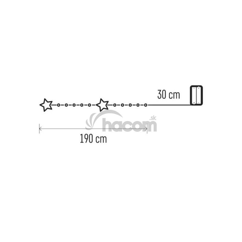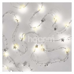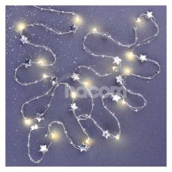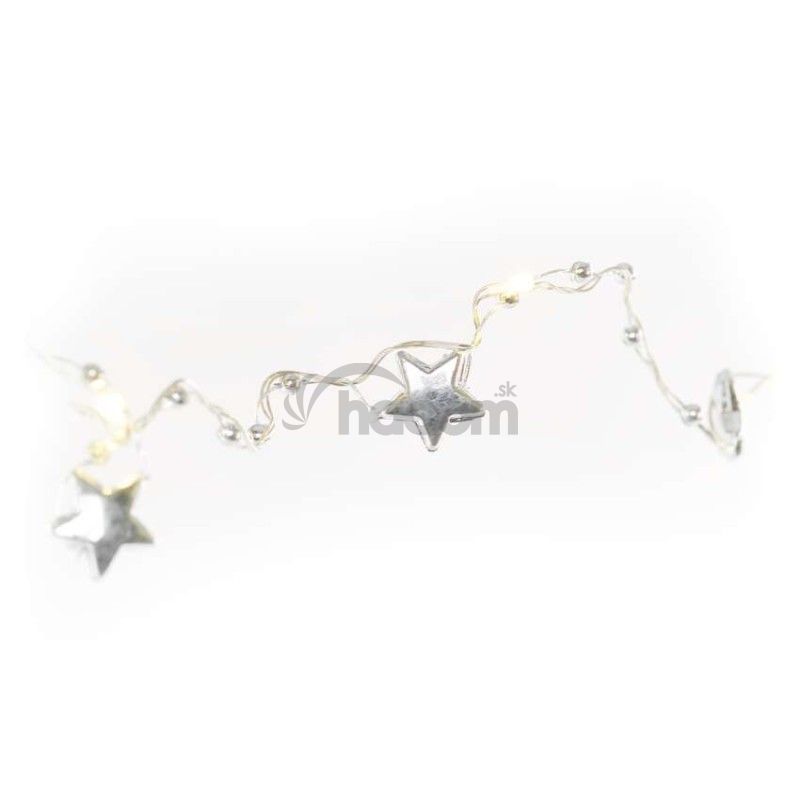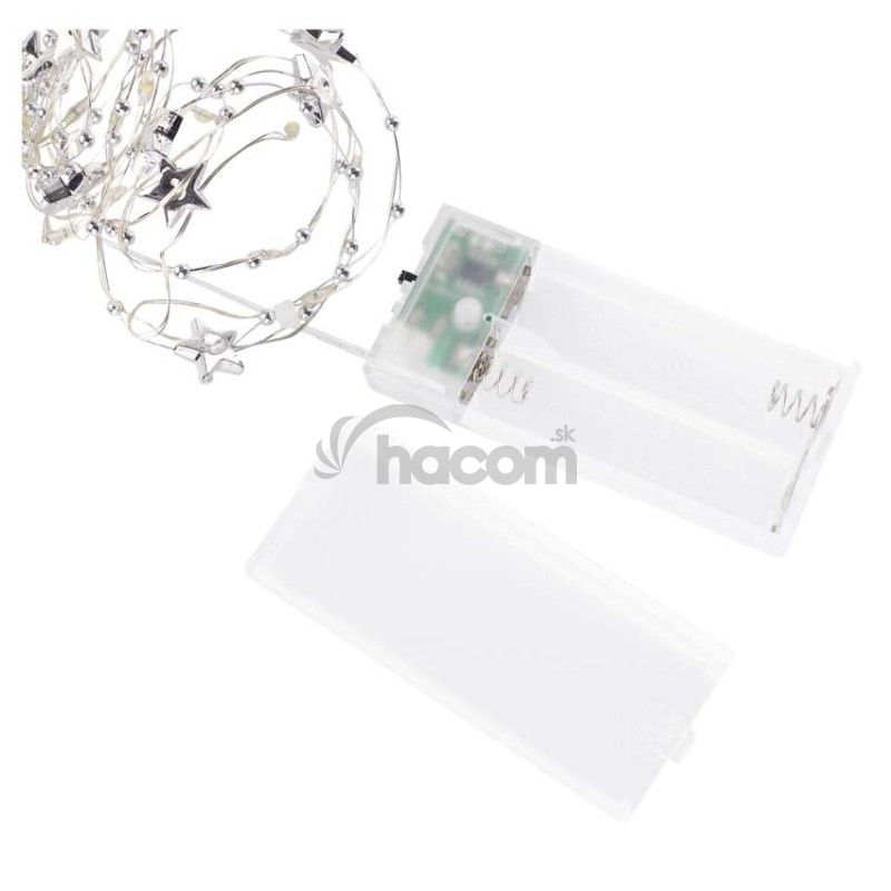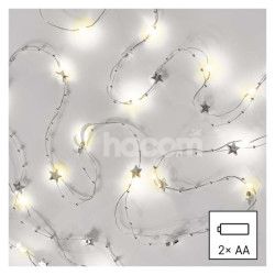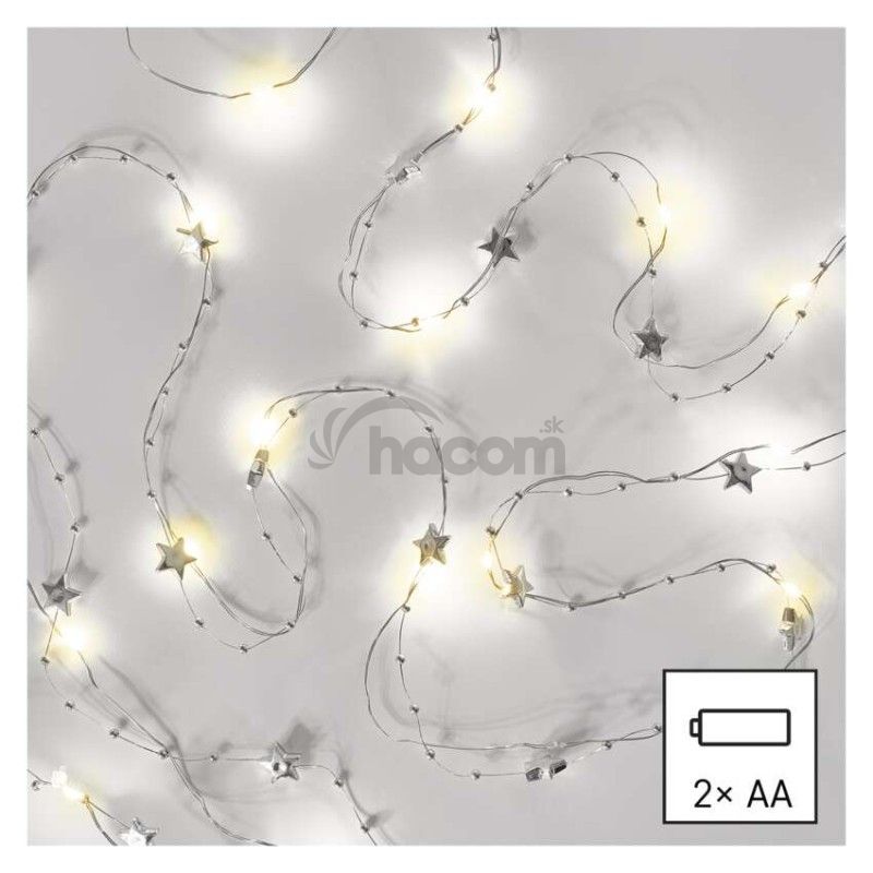 - LED vianočná reťaz strieborný – hviezdičky, 1,9 m, 2x AA, vnútorný, teplá biela, časovač DCGW07
