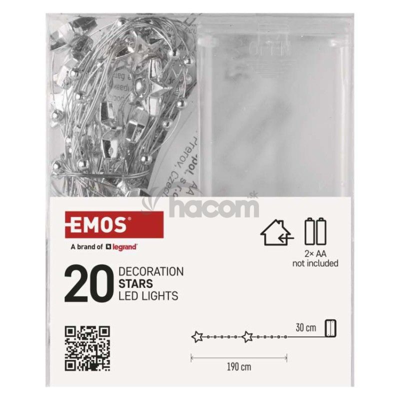 LED vianočná reťaz strieborný – hviezdičky, 1,9 m, 2x AA, vnútorný, teplá biela, časovač DCGW07