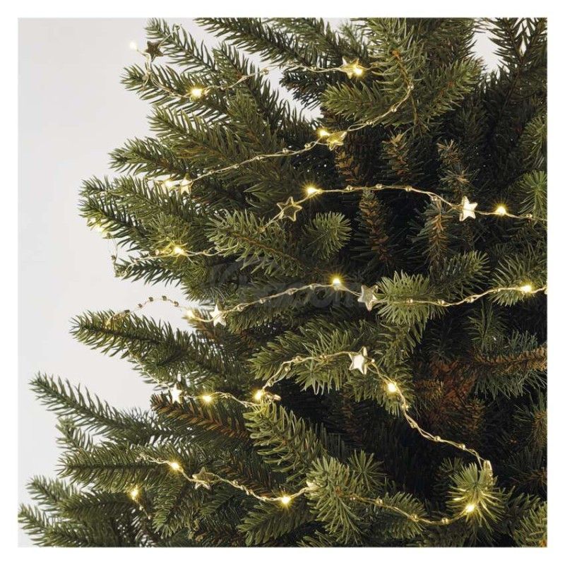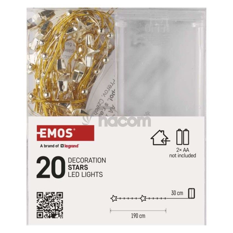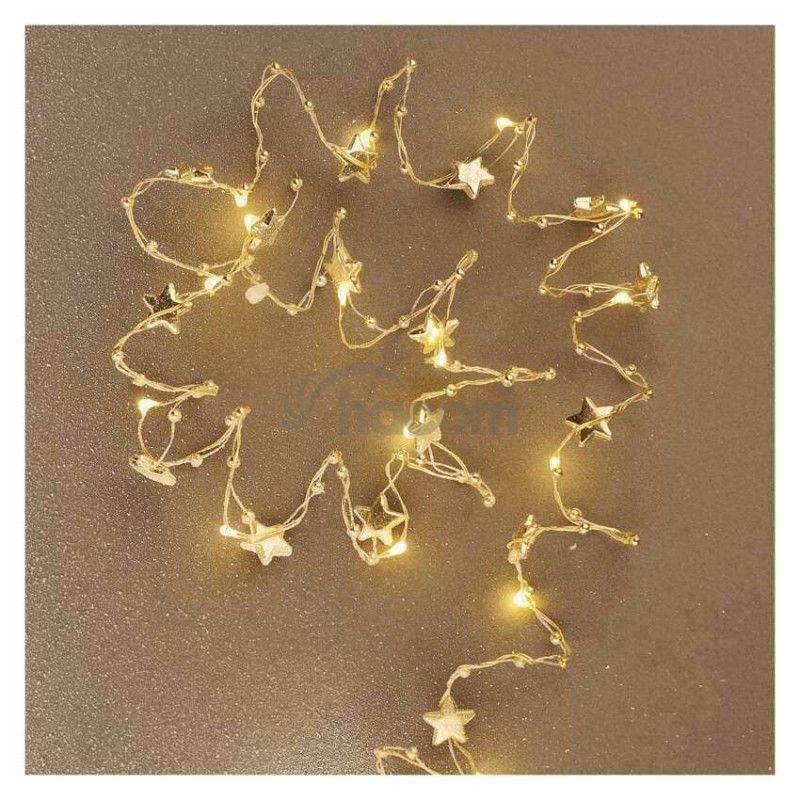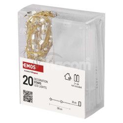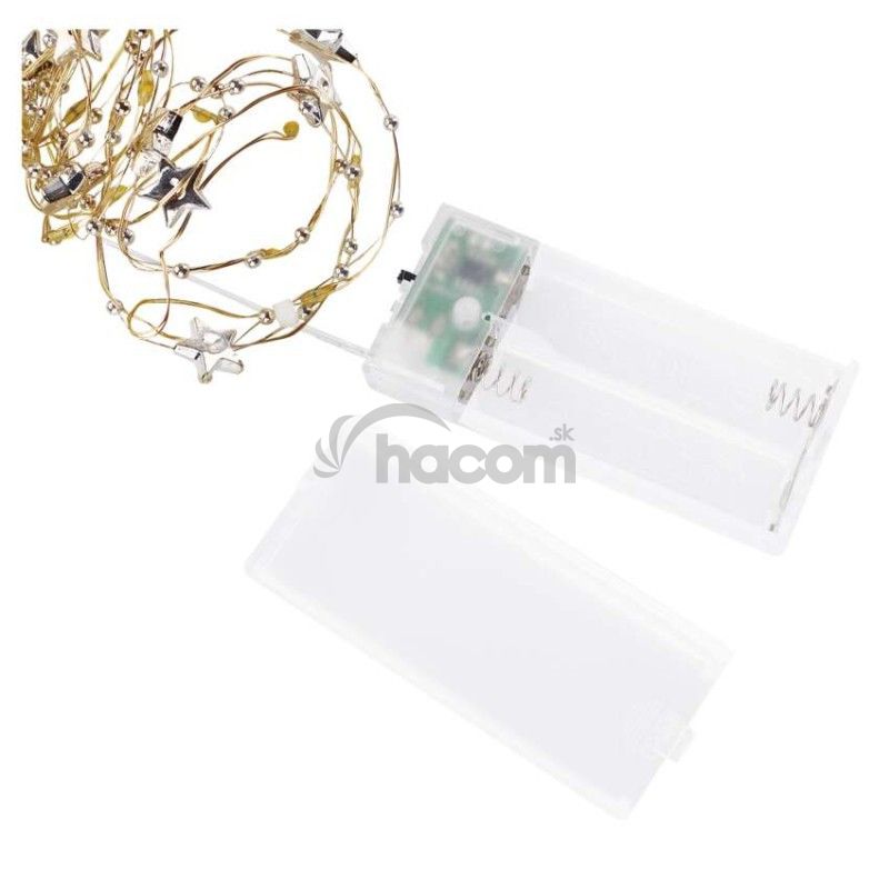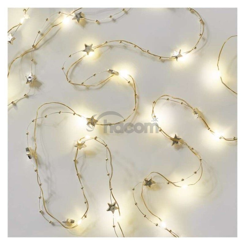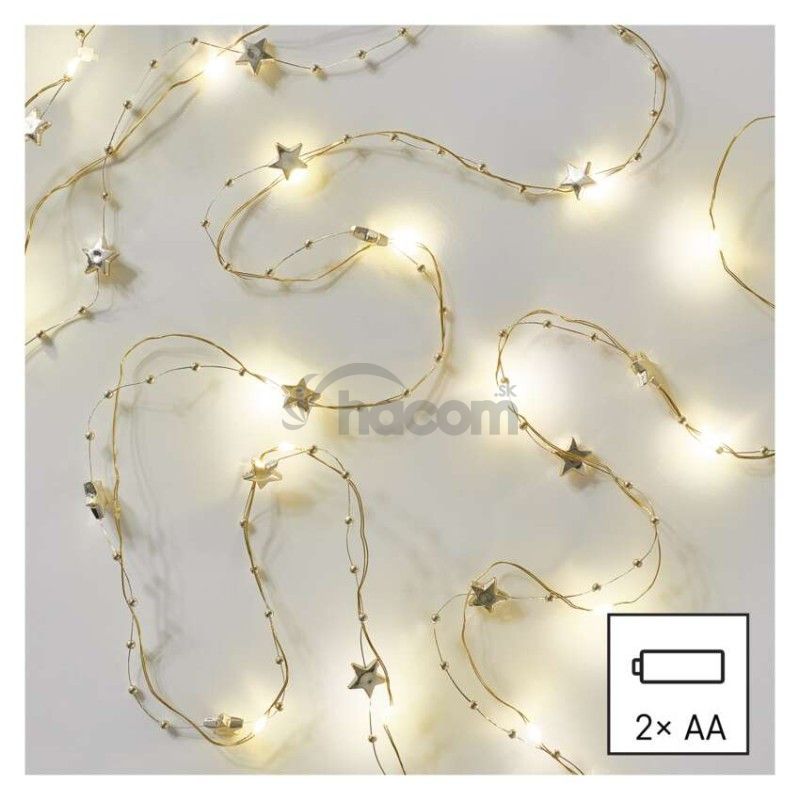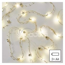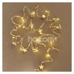 - LED vianočná reťaz zlatá – hviezdičky, 1,9 m, 2x AA, vnútorný, teplá biela, časovač DCGW09