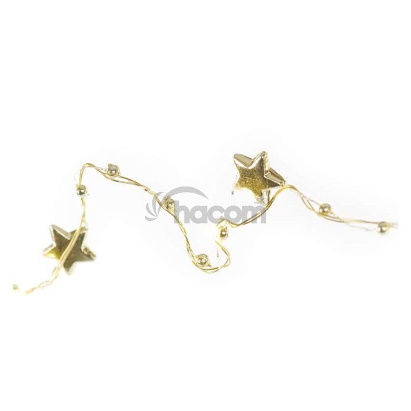 LED vianočná reťaz zlatá – hviezdičky, 1,9 m, 2x AA, vnútorný, teplá biela, časovač DCGW09