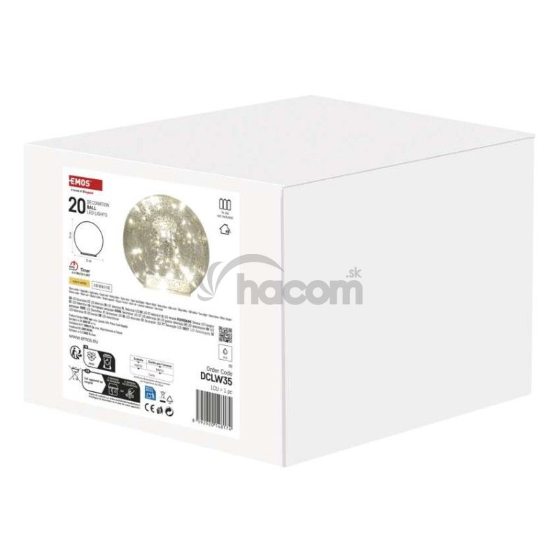 - LED vianočná sklenená guľa - zlatá, 15 cm, 3x AA, vnútorná, teplá biela, časovač DCLW35