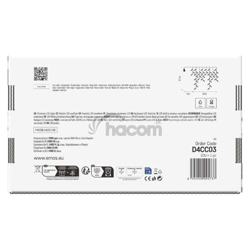 - LED vianočné cencúle, 10 m, vonkajšie aj vnútorné, studená biela, programy D4CC03