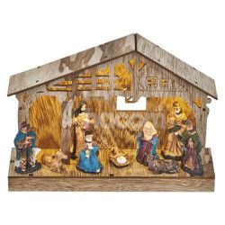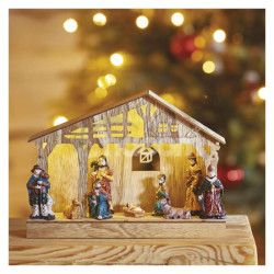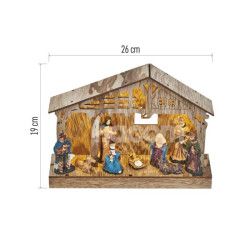 LED vianočný betlehem drevený, 19 cm, 3x AA, vnútorný, teplá biela, časovač DCWW14
