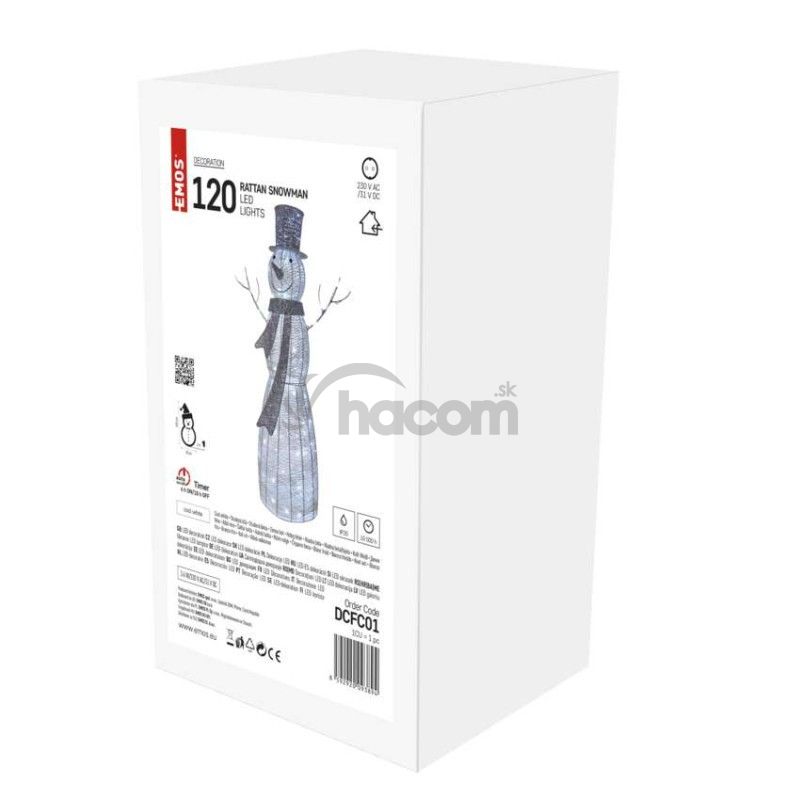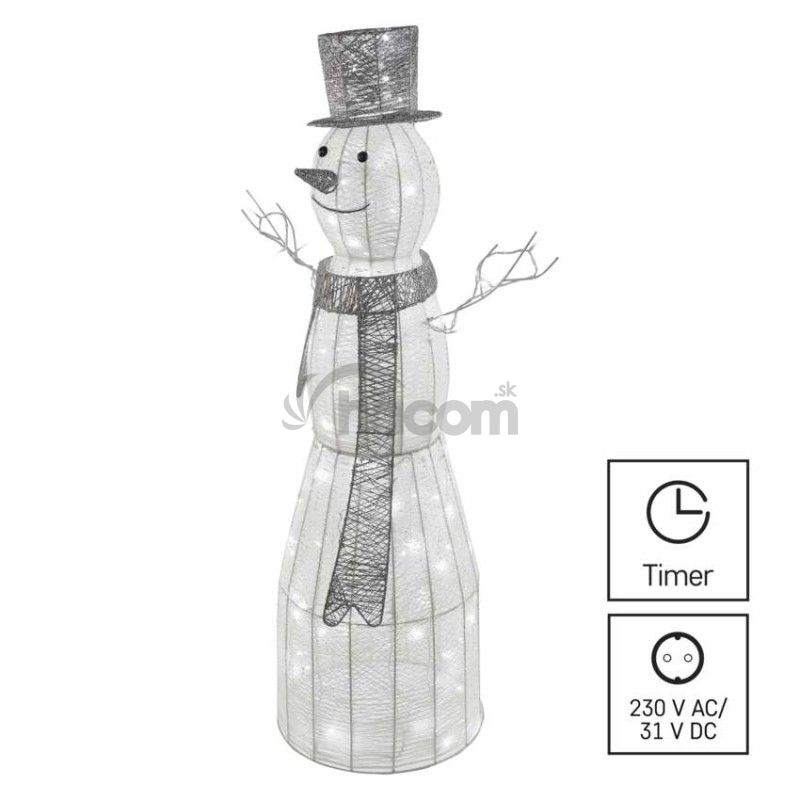 - LED vianočný snehuliak ratanový, 124 cm, vnútorný, studená biela, časovač DCFC01