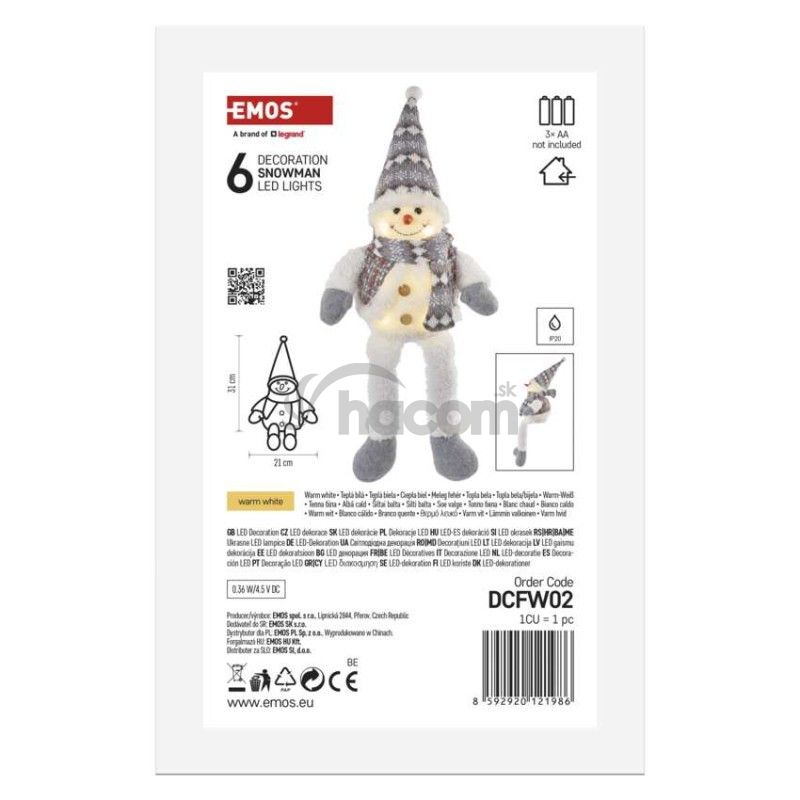 - LED vianočný snehuliak sediaci, 31 cm, 3× AA, vnút., teplá biela DCFW02
