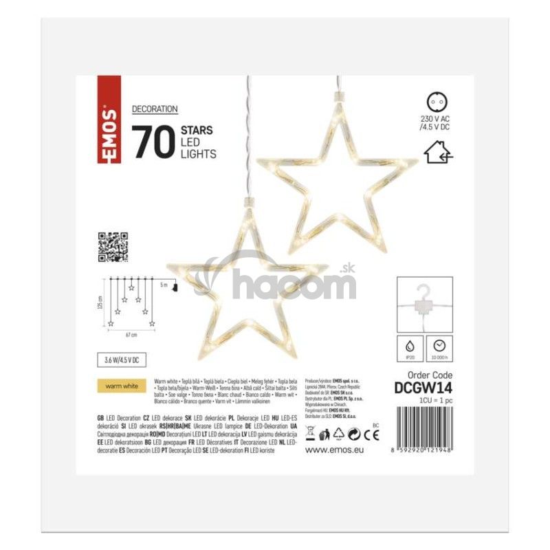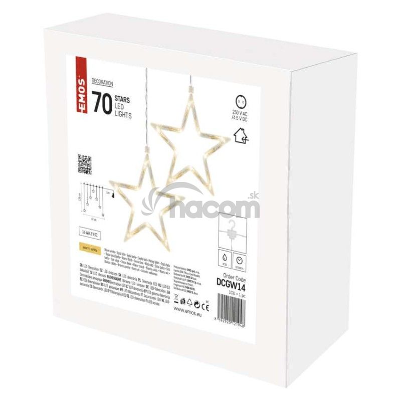 LED vianočný záves – 7 hviezd, 67x125 cm, vnútorný, teplá biela DCGW14