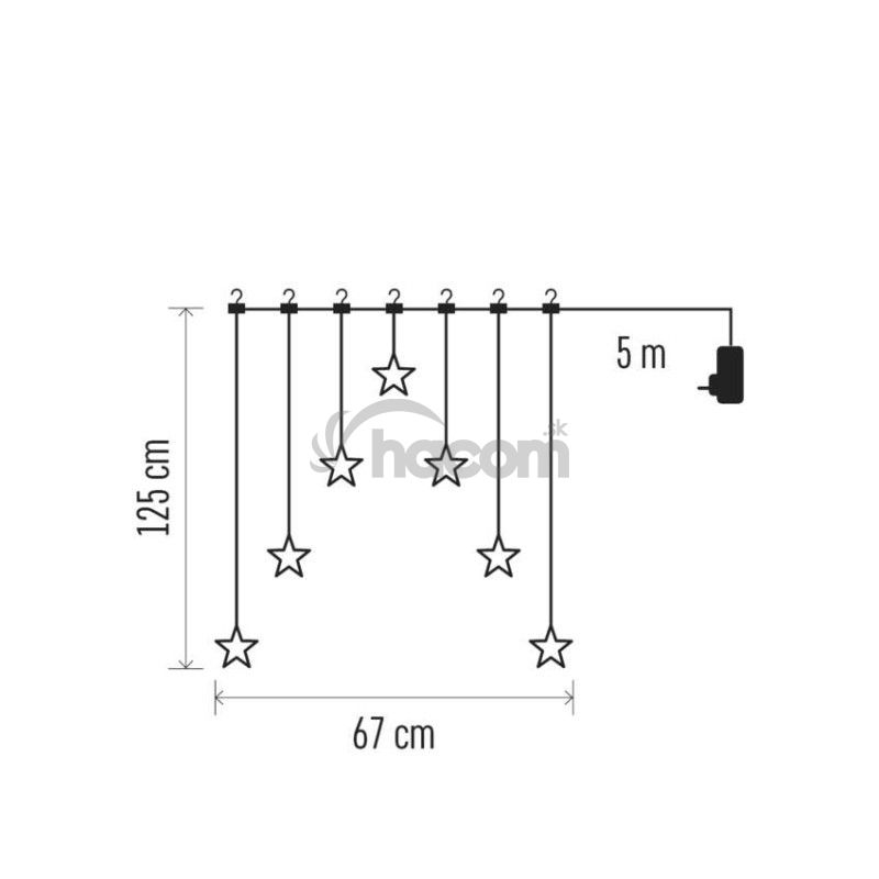 - LED vianočný záves – 7 hviezd, 67x125 cm, vnútorný, teplá biela DCGW14