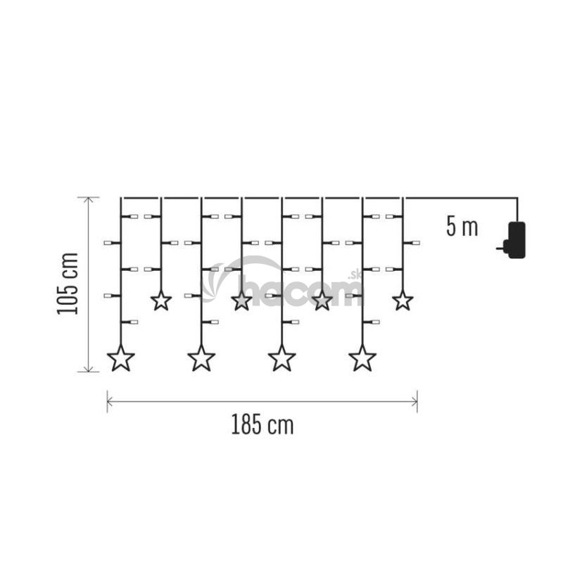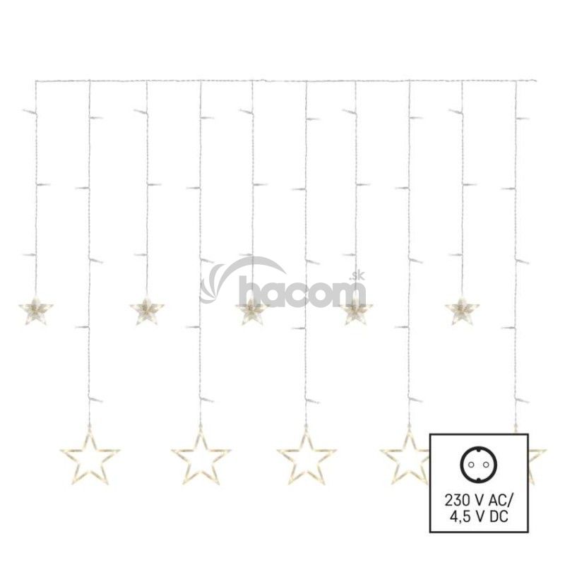 - LED vianočný záves – hviezdy, 185x105 cm, vnútorný, teplá biela DCGW12