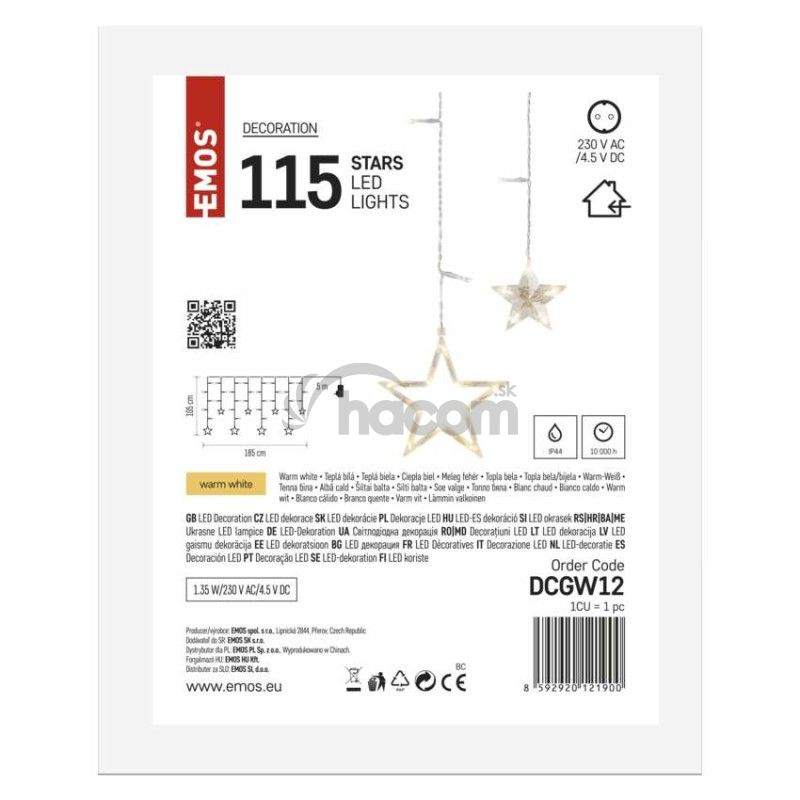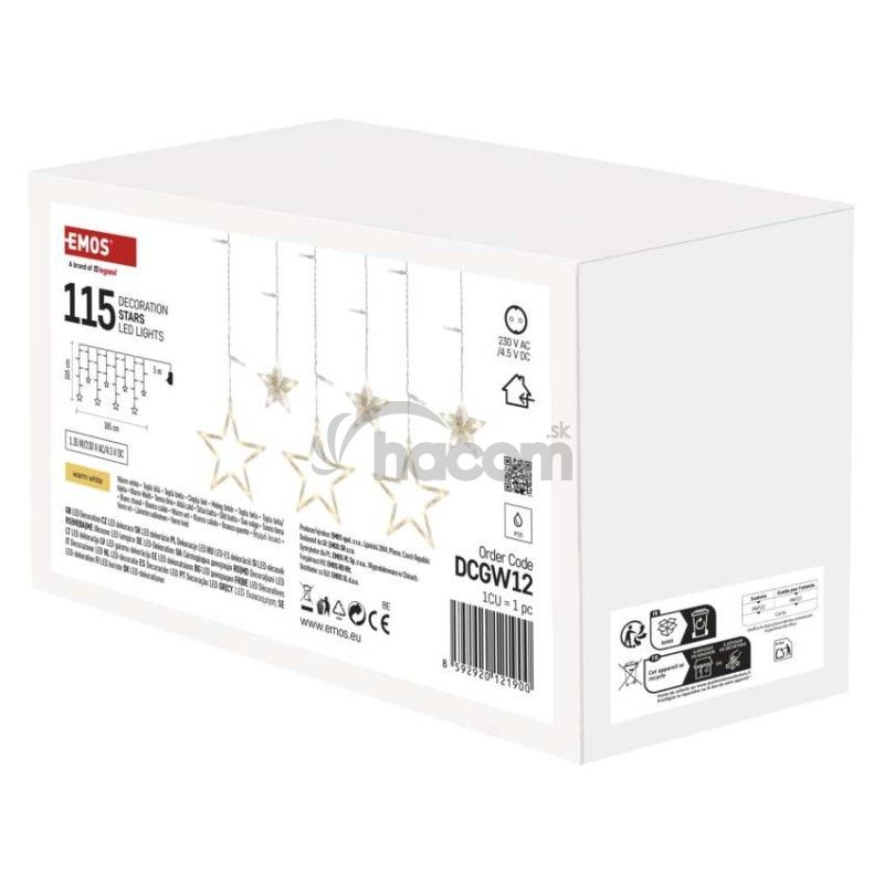 LED vianočný záves – hviezdy, 185x105 cm, vnútorný, teplá biela DCGW12