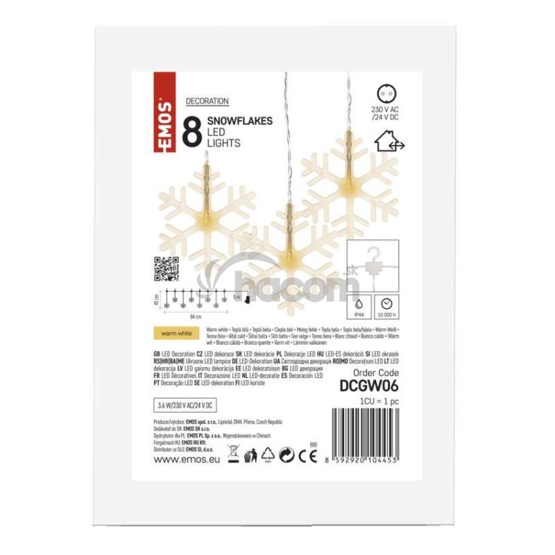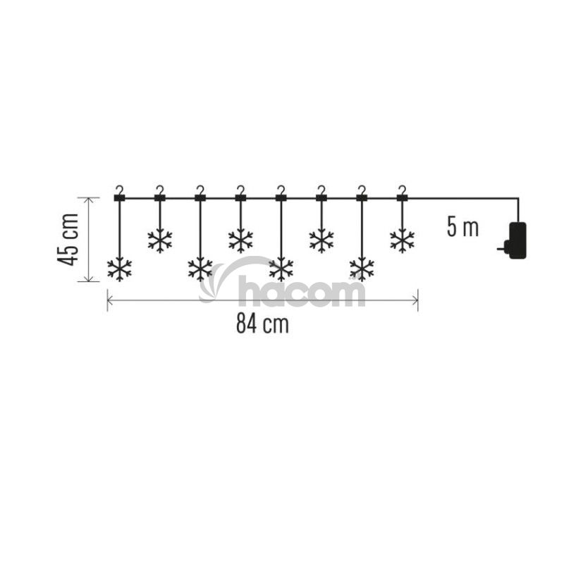 - LED vianočný záves – snehové vločky, 84 cm, vnútorný, teplá biela DCGW06