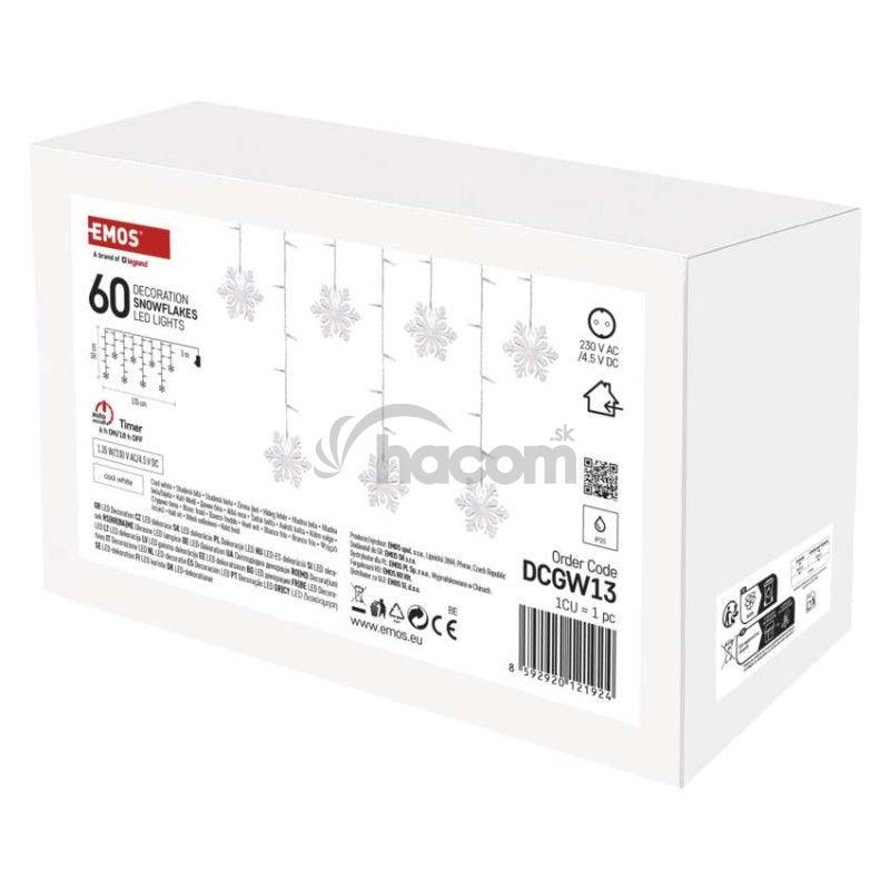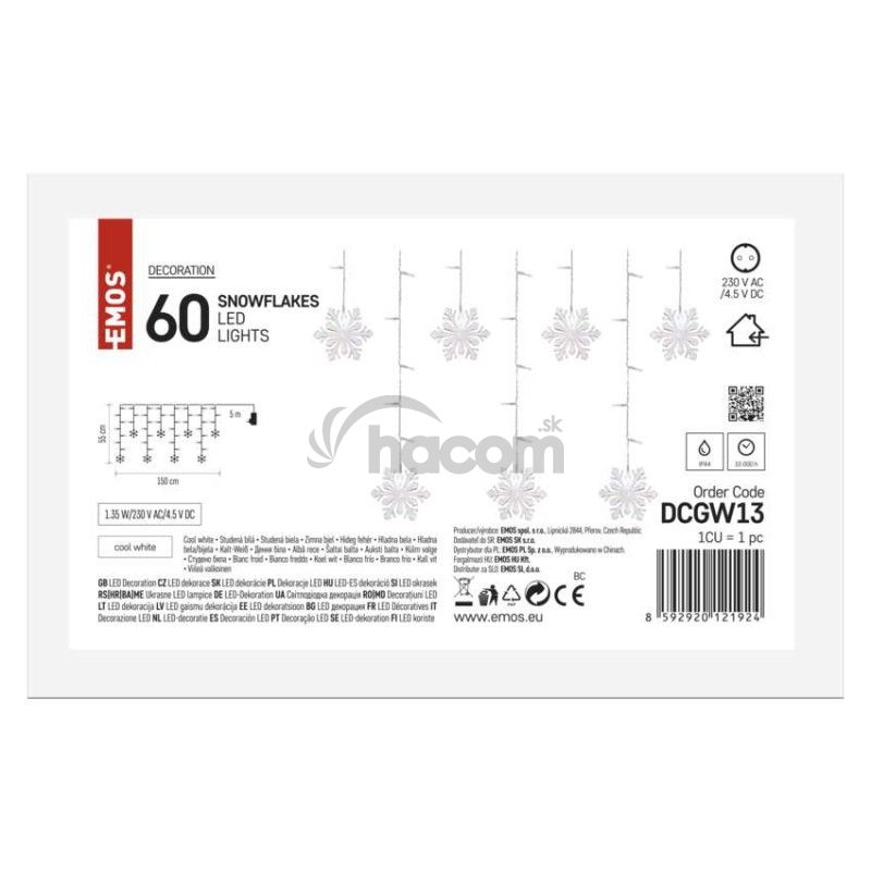 LED vianočný záves – vločky, 135x50 cm, vnútorná, studená biela DCGW13