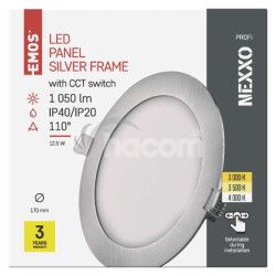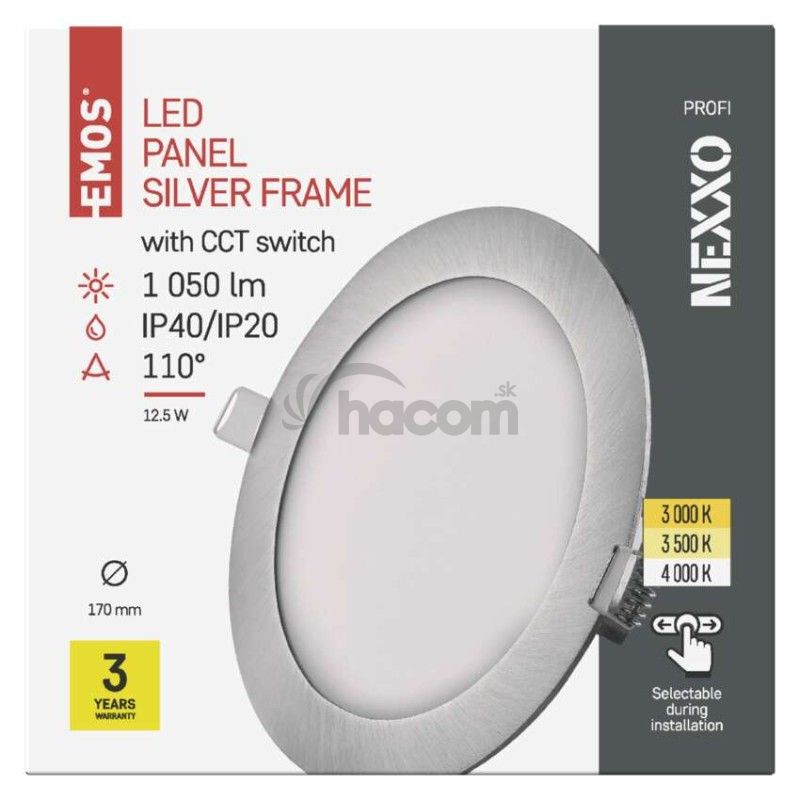 - LED vstavané svietidlo NEXXO, kruhové, strieborné, 12W, CCT ZD1233