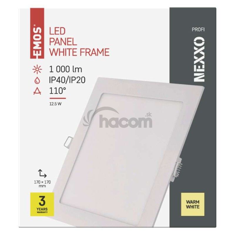 - LED vstavané svietidlo NEXXO, štvorec, biely, 12W, teplá biela ZD2134