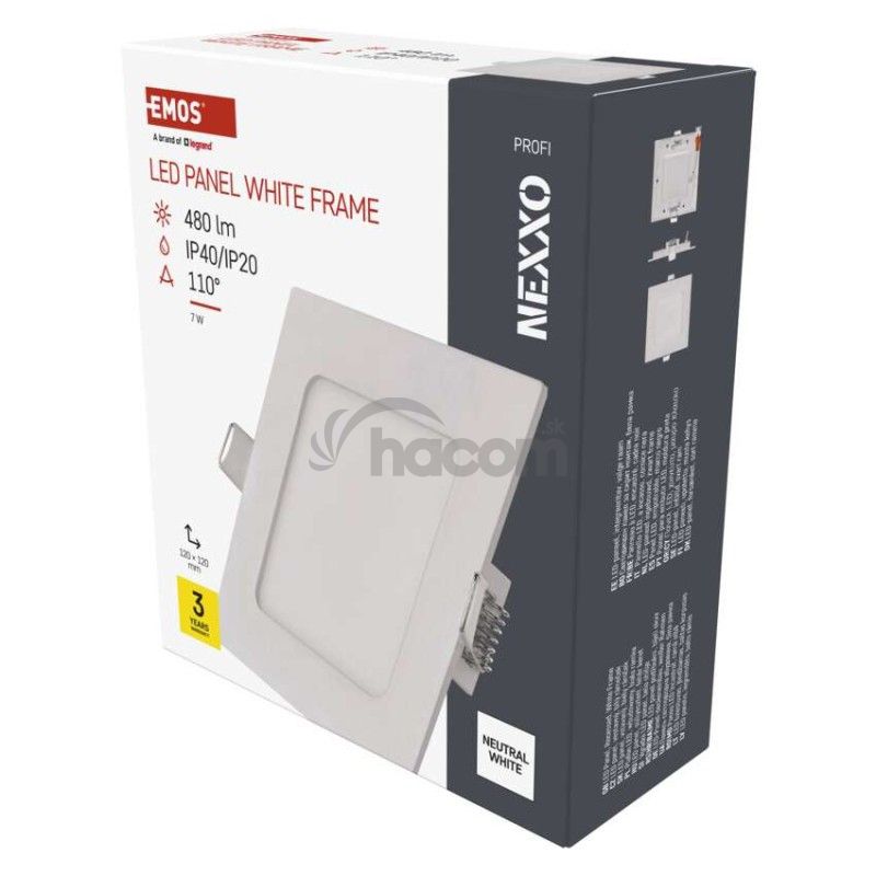 LED vstavané svietidlo NEXXO, štvorec, biely, 7W, neutrálna biela ZD2125