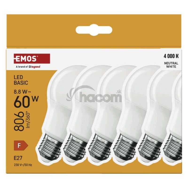 - LED žiarovka Basic A60 / E27 / 8,8 W (60 W) / 806 lm / Neutrálna biela 6ks ZL5F48.6