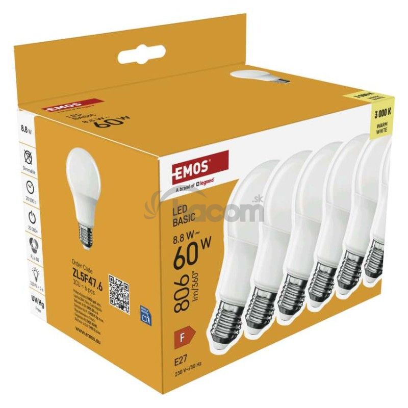 LED žiarovka Basic A60 / E27 / 8,8 W (60 W) / 806 lm / Teplá biela 6ks ZL5F47.6