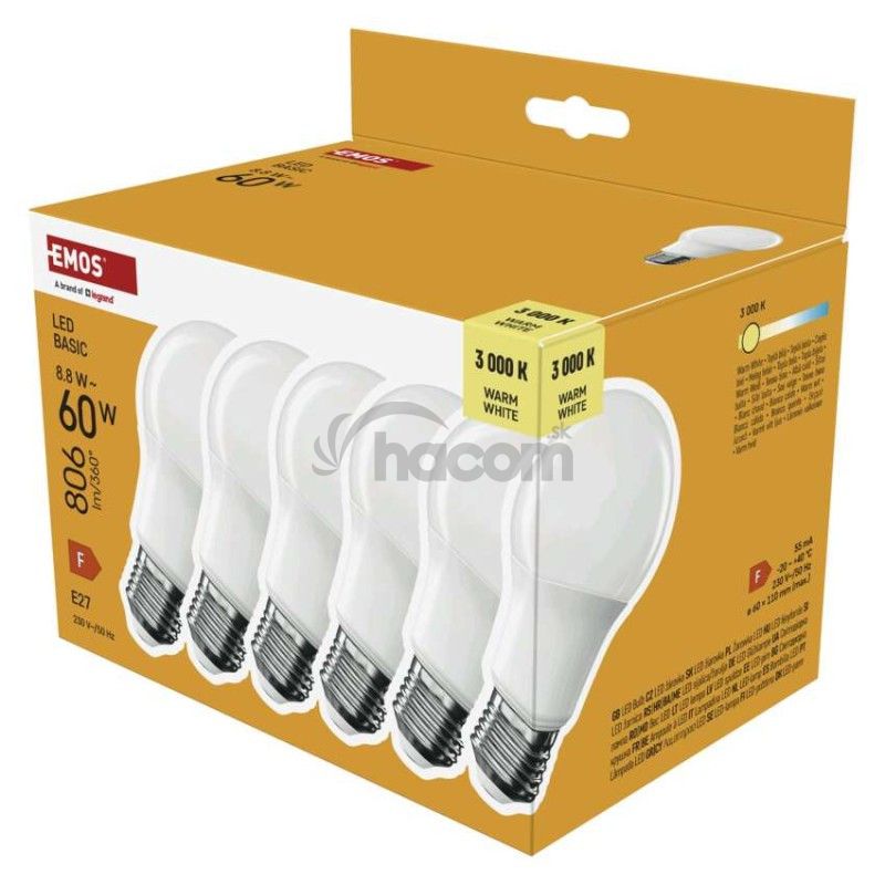 - LED žiarovka Basic A60 / E27 / 8,8 W (60 W) / 806 lm / Teplá biela 6ks ZL5F47.6