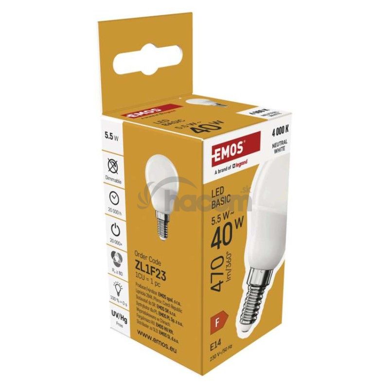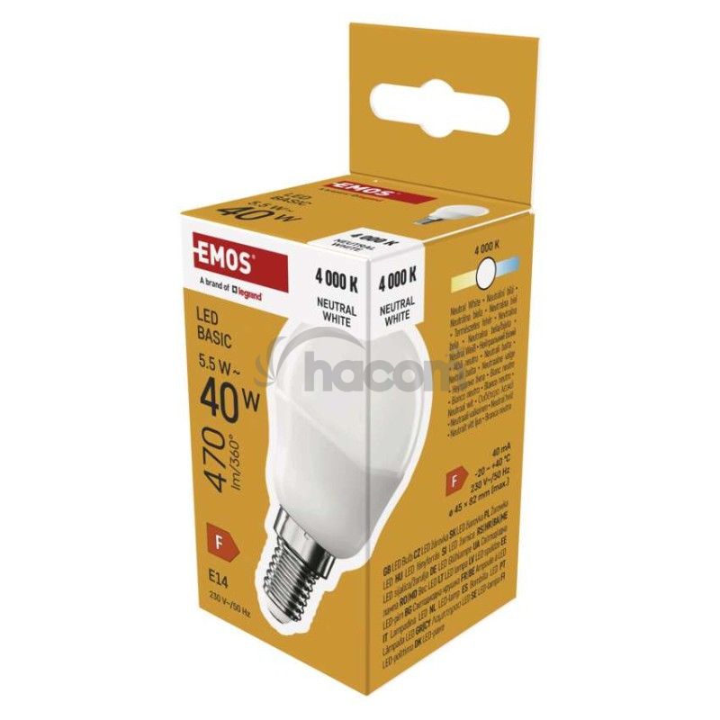 - LED žiarovka Basic Mini Globe / E14 / 5,5 W (40 W) / 470 lm / Neutrálna biela ZL1F23