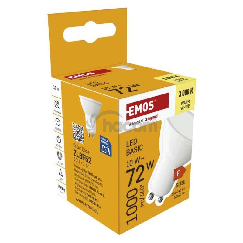 LED žiarovka Basic MR16 biela/ GU10 / 10 W (72 W) / 1000 lm / Teplá biela ZL8F52