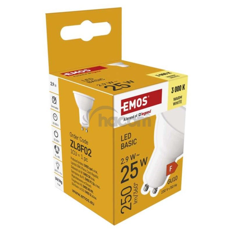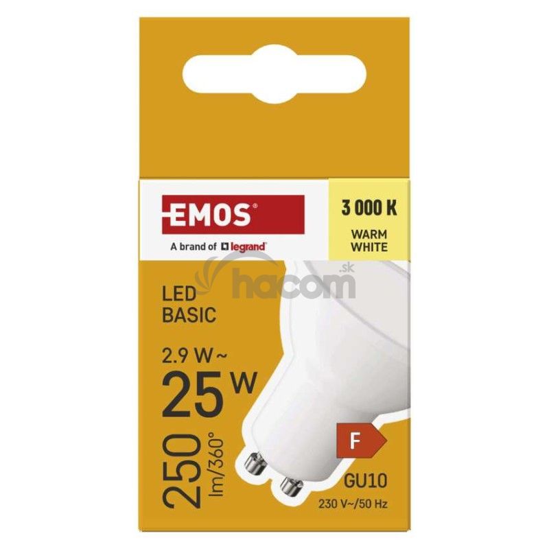 - LED žiarovka Basic MR16 / GU10 / 2,9 W (25 W) / 250 lm / Teplá biela ZL8F02