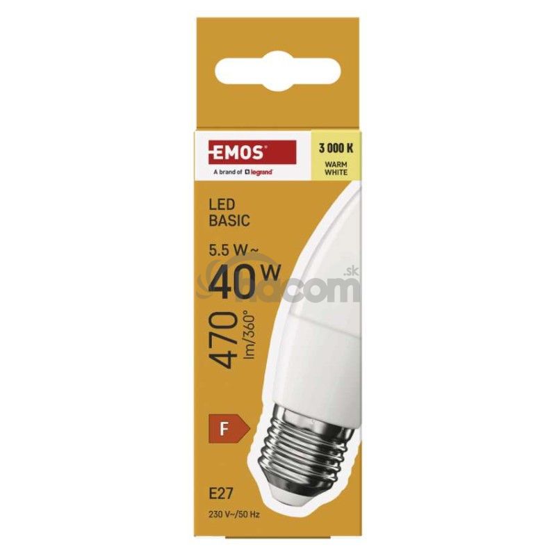 - LED žiarovka Basic sviečka / E27 / 5,5 W (40 W) / 470 lm / Teplá biela ZL4F22