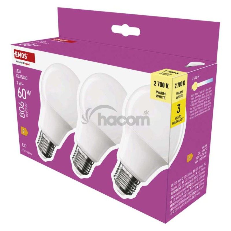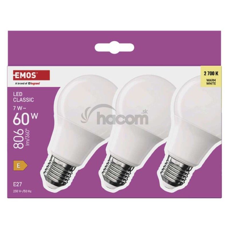 LED žiarovka Classic A60 / E27 / 7 W (60 W) / 806 lm / Teplá biela 3ks ZQ5E41.3