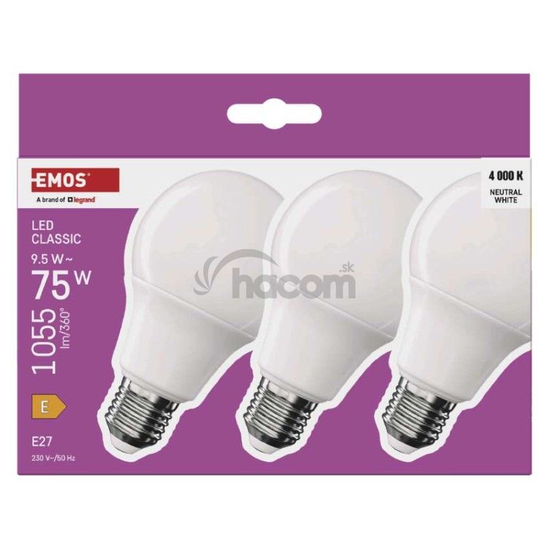 - LED žiarovka Classic A60 / E27 / 9,5 W (75 W) / 1055 lm / Neutrálna biela 3ks ZQ5E53.3