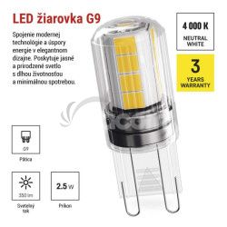 - LED žiarovka Classic JC / G9 / 2,5 W (32 W) / 350 lm / Neutrálna biela ZQ9D13