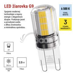- LED žiarovka Classic JC / G9 / 2,5 W (32 W) / 350 lm / Studená biela ZQ9D14