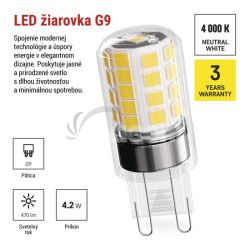 - LED žiarovka Classic JC / G9 / 4,2 W (40 W) / 470 lm / Neutrálna biela ZQ9E23