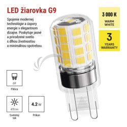 - LED žiarovka Classic JC / G9 / 4,2 W (40 W) / 470 lm / teplá biela ZQ9E22