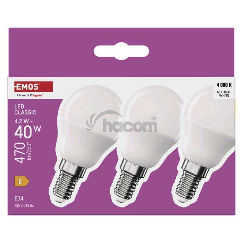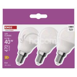 - LED žiarovka Classic Mini Globe / E14 / 4,2 W (40 W) / 470 lm / Neutrálna biela 3ks ZQ1E23.3
