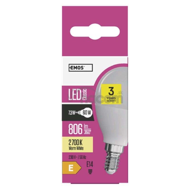 - LED žiarovka Classic Mini Globe / E14 / 7,3 W (60 W) / 806 lm / teplá biela ZQ1230