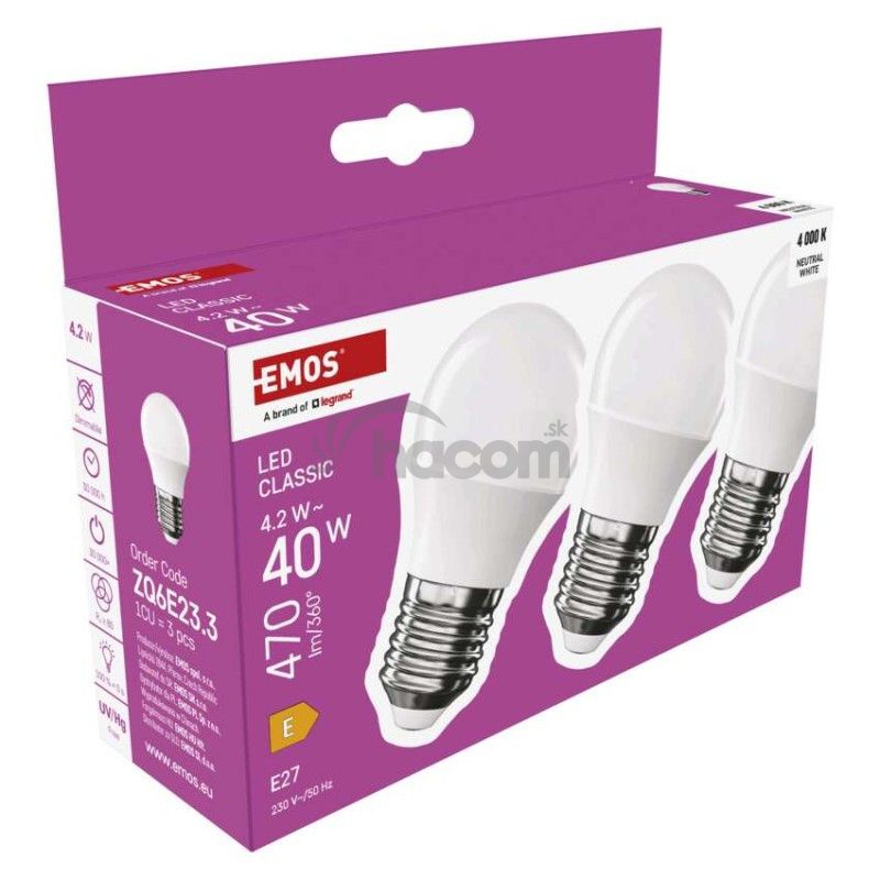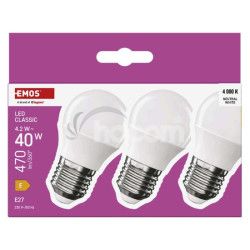 - LED žiarovka Classic Mini Globe / E27 / 4,2 W (40 W) / 470 lm / Neutrálna biela 3ks ZQ6E23.3