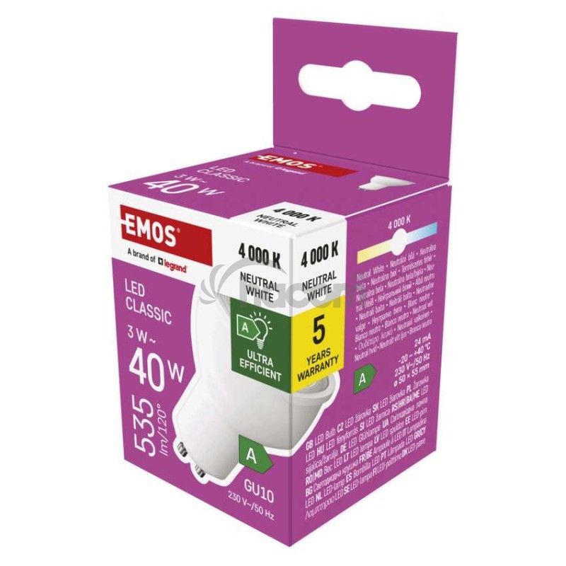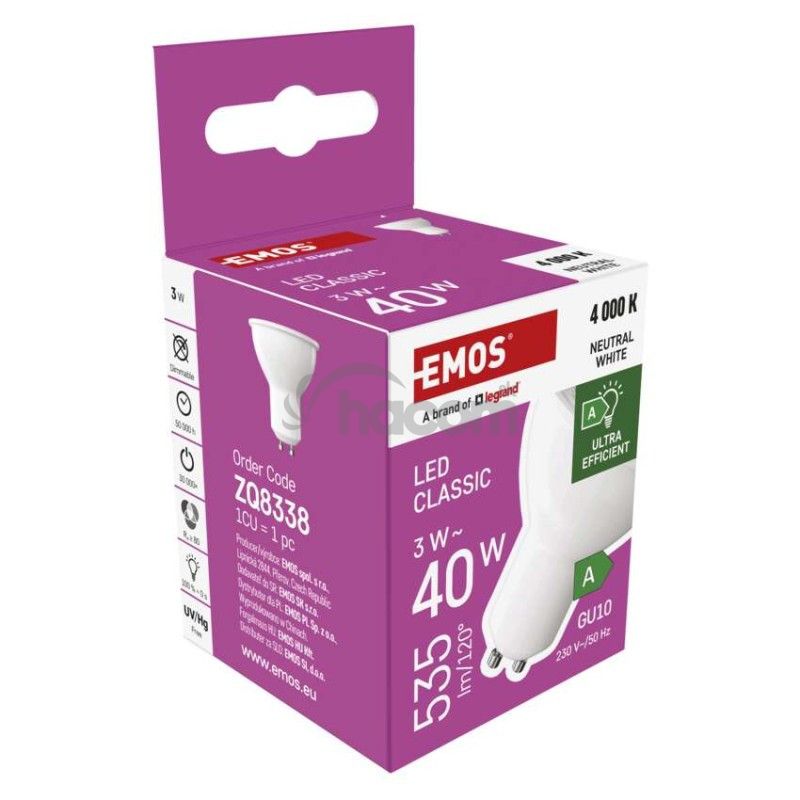 - LED žiarovka Classic MR16 A CLASS/ GU10 / 3 W (40 W) / 535 lm / Neutrálna biela ZQ8338