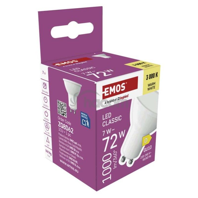 - LED žiarovka Classic MR16 biela/ GU10 / 7 W (72 W) / 1000 lm / Teplá biela ZQ8D62