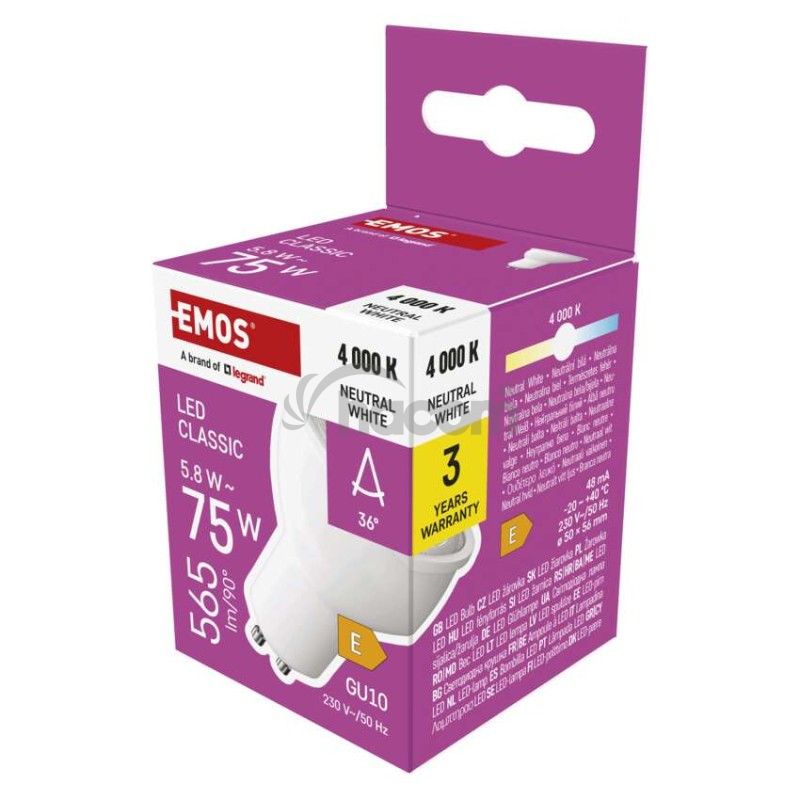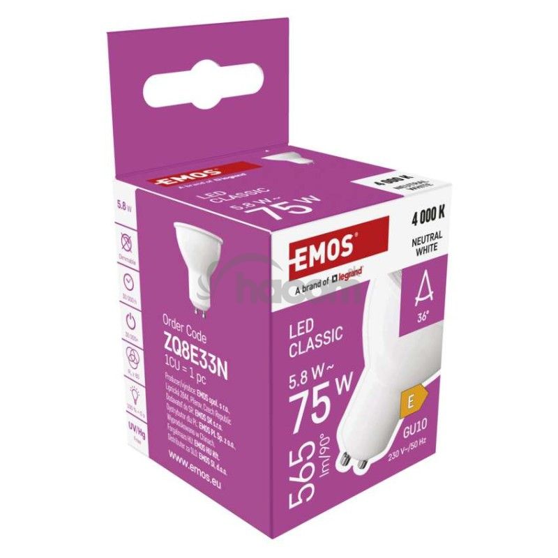- LED žiarovka Classic MR16 / GU10 / 5,8 W (75 W) / 565 lm / Neutrálna biela ZQ8E33N