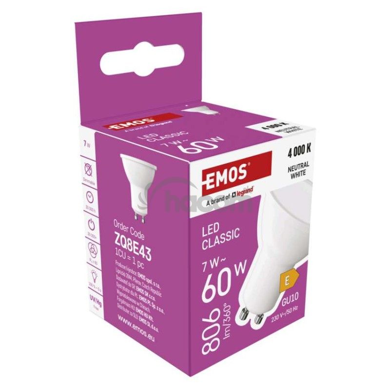 - LED žiarovka Classic MR16 / GU10 / 7 W (60 W) / 806 lm / neutrálna biela ZQ8E43
