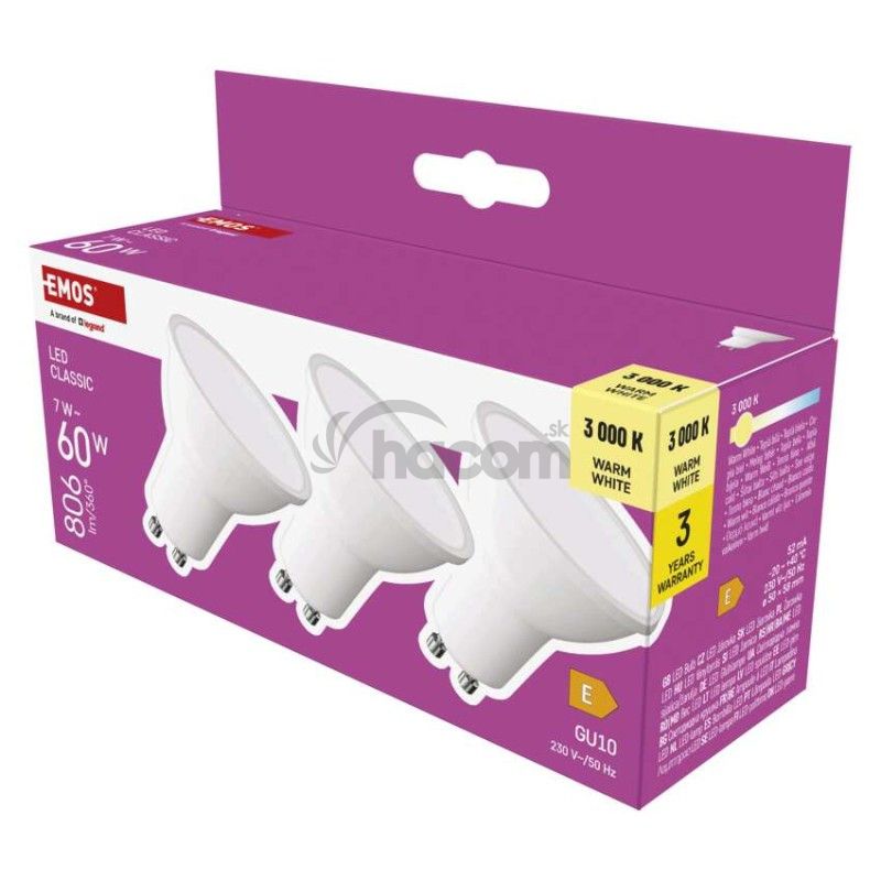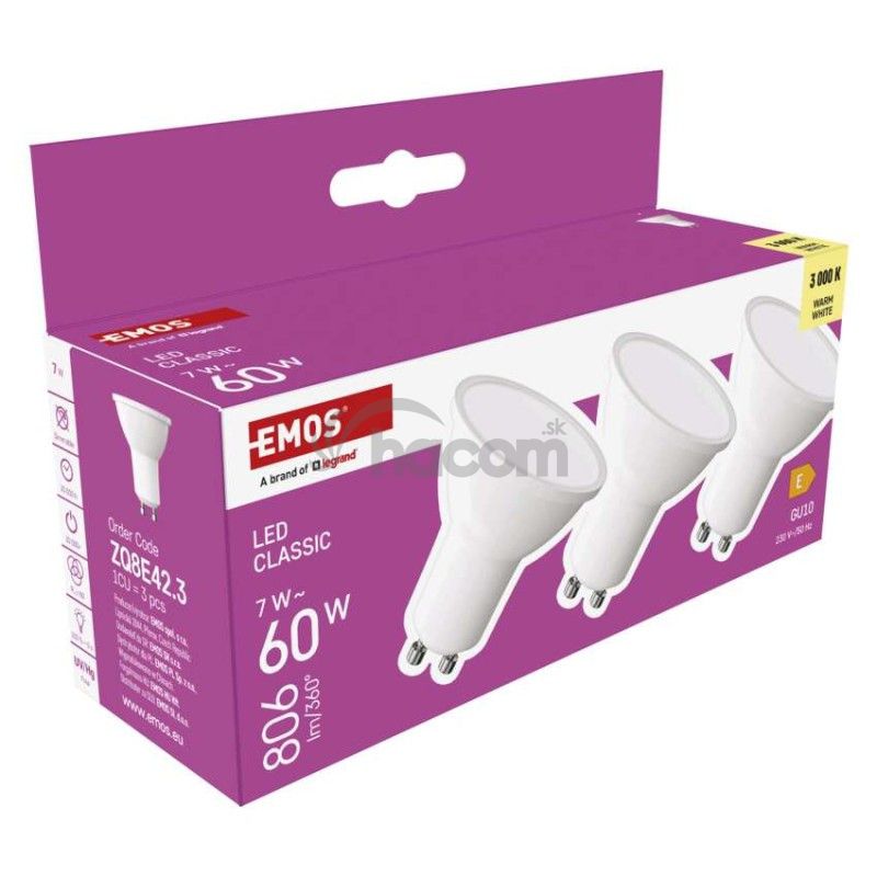 LED žiarovka Classic MR16 / GU10 / 7 W (60 W) / 806 lm / Teplá biela 3ks ZQ8E42.3