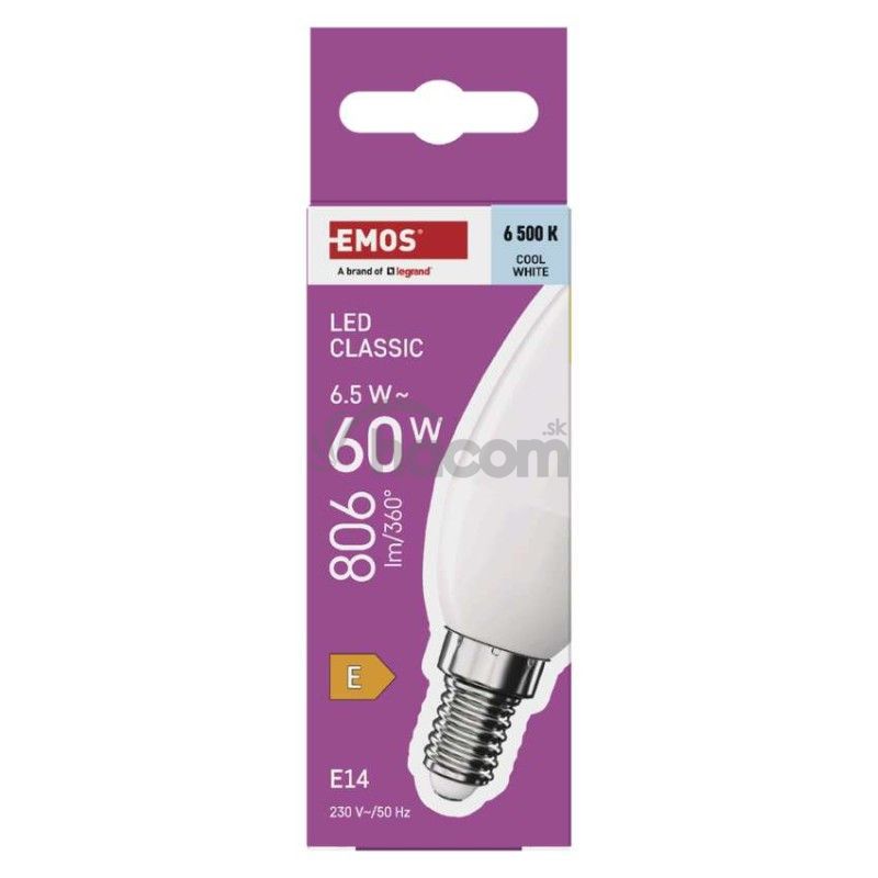 - LED žiarovka Classic sviečka / E14 / 6,5 W (60 W) / 806 lm / Studená biela ZQ3E44
