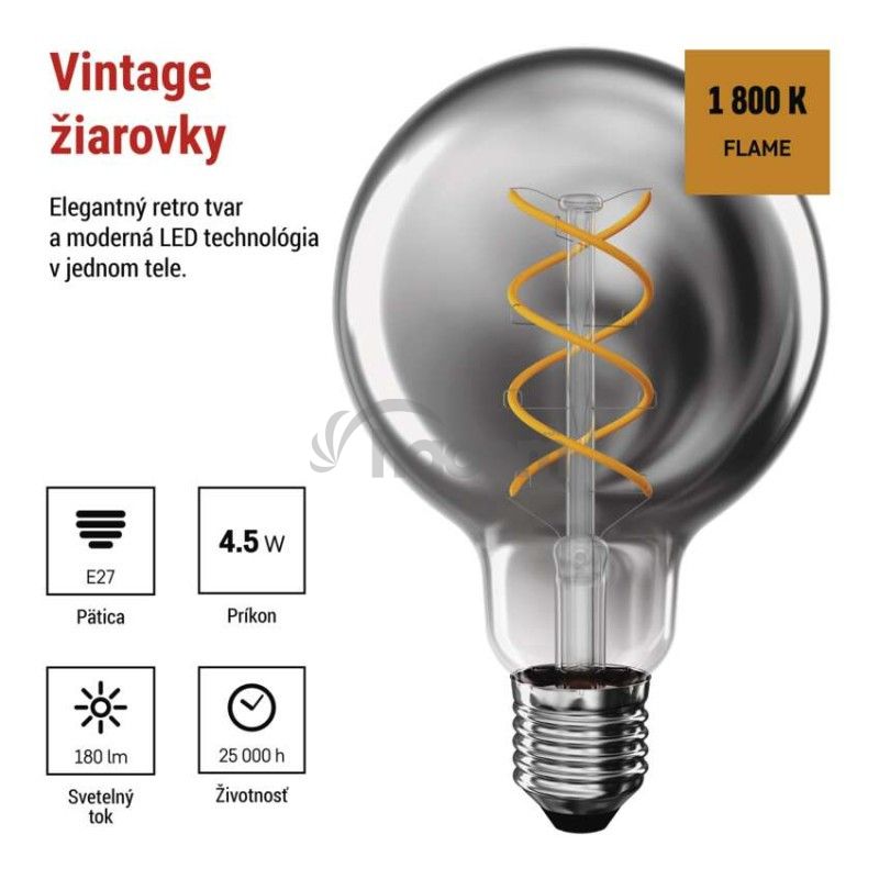 - LED žiarovka DECO SMOKED G95 / E27 / 4,5 W (19 W) / 180 lm / flame Z52311