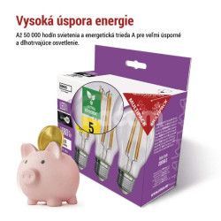 - LED žiarovka Filament A CLASS A60 / E27 / 5 W (75 W) / 1 060 lm / neutrálna biela 3ks ZF5158.3
