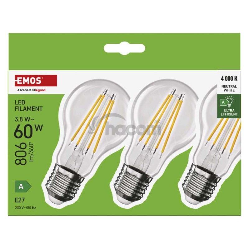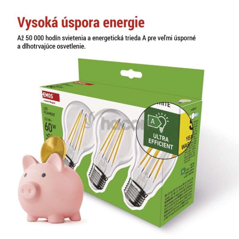 LED žiarovka Filament A60 A CLASS/ E27 / 3,8 W (60 W) / 806 lm / neutrálna biela 3ks ZF5148.3