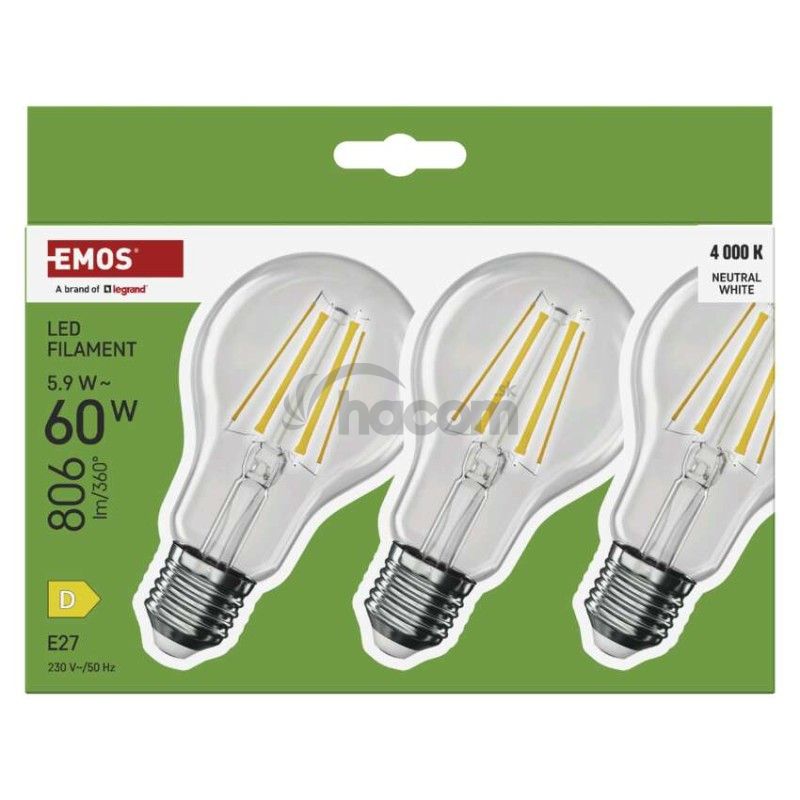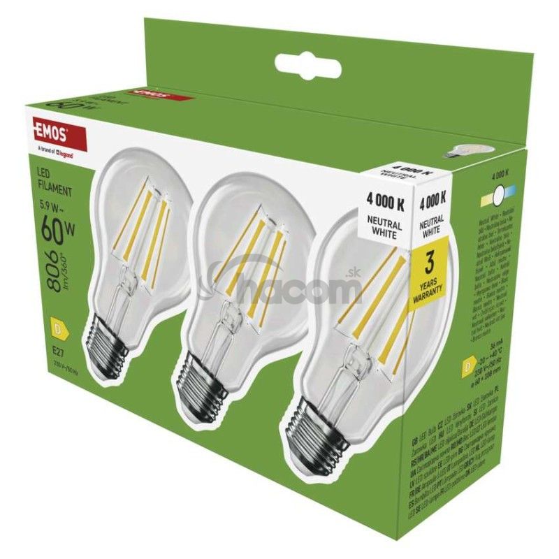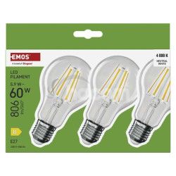- LED žiarovka Filament A60 / E27 / 5,9 W (60 W) / 806 lm / Neutrálna biela 3ks ZF5D43.3