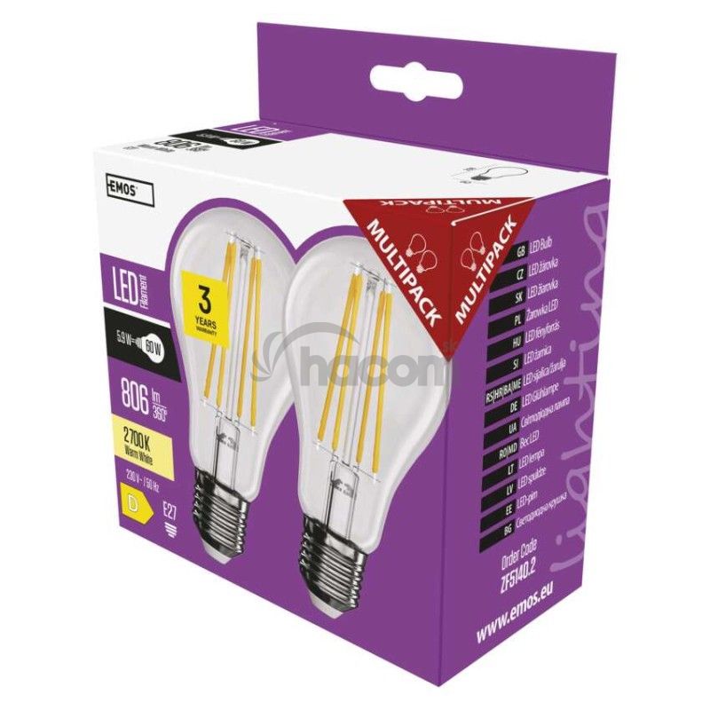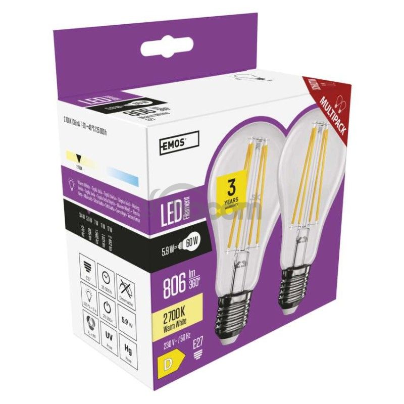 - LED žiarovka Filament A60 / E27 / 5,9 W (60 W) / 806 lm / teplá biela 2ks ZF5140.2