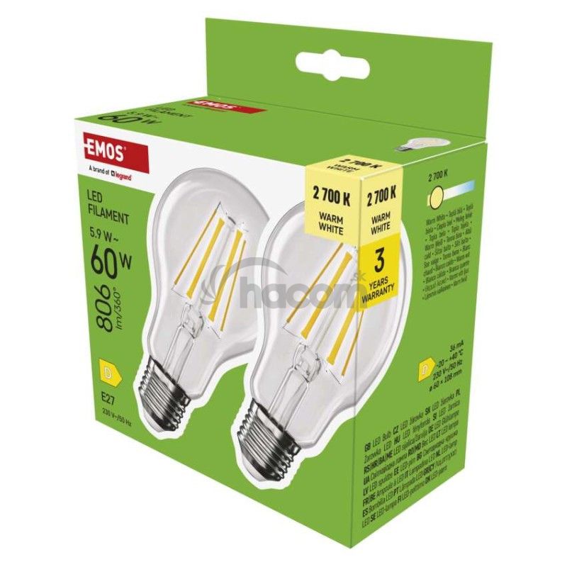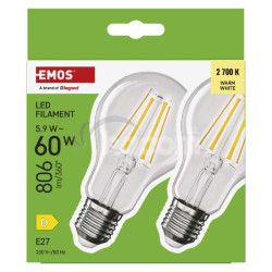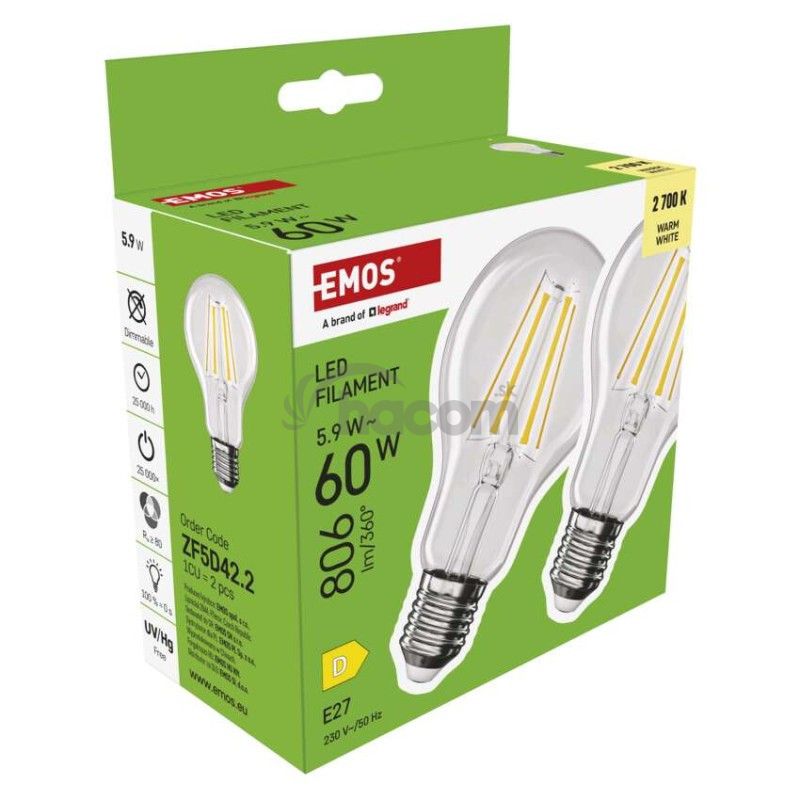 - LED žiarovka Filament A60 / E27 / 5,9 W (60 W) / 806 lm / Teplá biela 2ks ZF5D42.2